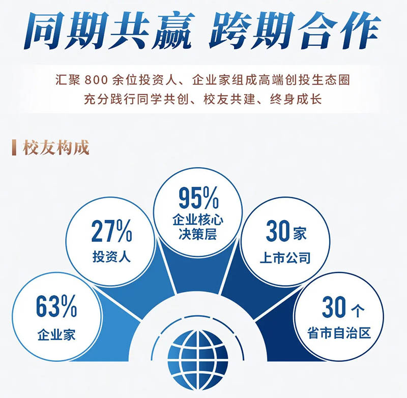 “双轴线”指横向同班交流与纵向跨期互动,“多中心”则依托全国范围内的各地方校友会,通过举办多样化特色活动及内部私享会,促进校友间紧密而多元的联系,共同塑造了一个秉持中长期视角的终身成长型社群。