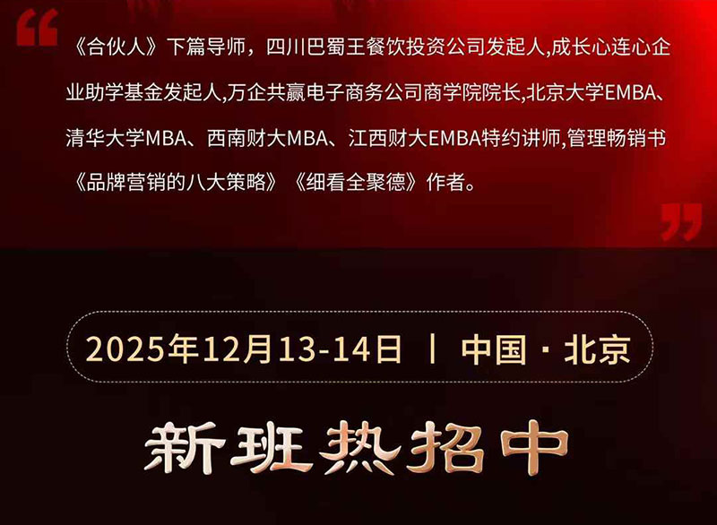 12月13-14日 《中国合伙人股权设计与激励》梁慧《合伙人》下篇导师,四川巴蜀王餐饮投资公司发起人,成长心连心企业助学基金发起人,万企共赢电子商务公司商学院院长,北京大学EMBA、清华大学MBA、西南财大MBA、江西财大EMBA特约讲师,管理畅销书《品牌营销的八大策略》细看全聚德》作者。