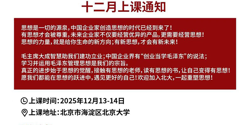 北京大学东方思想与管理智慧高级研修班十二月上课通知